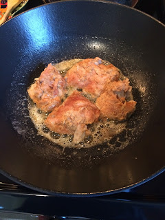 Next up, you had to carefully take the bones out of the chicken thighs and then you browned the chicken thighs in melted butter (this is NOT a light recipe!).